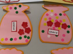 製作も行っています。だいち組はひなあられを作りました。4色のシールでひなあられを表現しています。