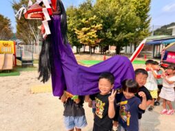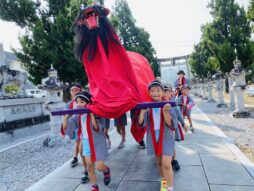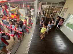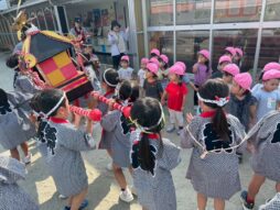 お神輿と牛鬼を担いで園庭を練り歩きました♪