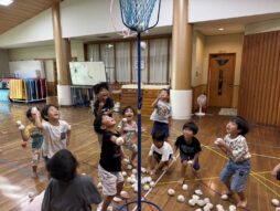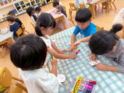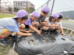 虫取りやリレーごっこなどとても楽しそう。園児祭りに向け、先生たちと