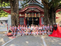 御神輿や牛鬼さんと一緒に写真を撮ってもらい