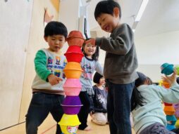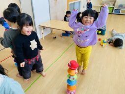 遊びの中でだるま積みをしたり