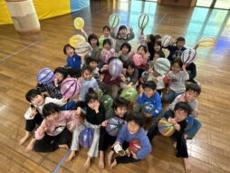 みんなで風船ボールで遊びました。