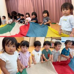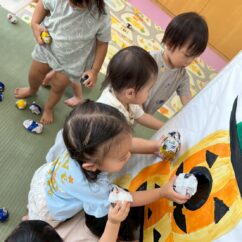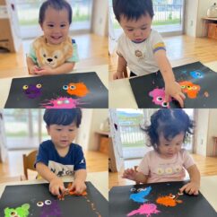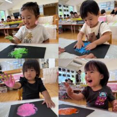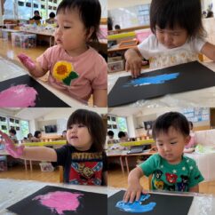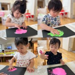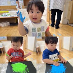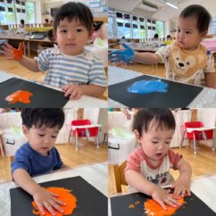 色の変化や感触を楽しんでいました。「ぽっとん!ぽっとん♪」