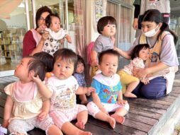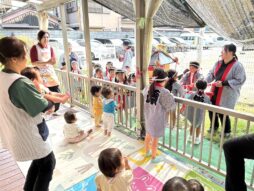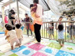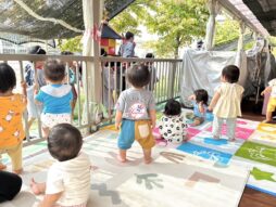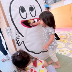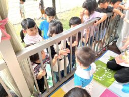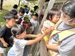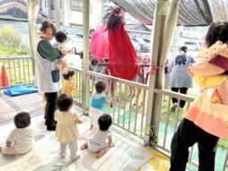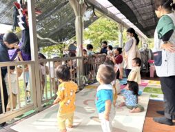 お神輿と牛鬼を担いで園庭を練り歩きました♪