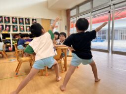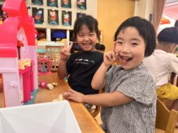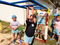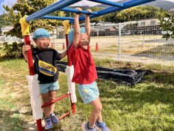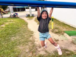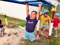 そんなかわいい後ろ姿をパシャリ♪外では、うんていが大流行中の4歳児さん☆
