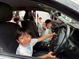 自動車や二輪車の乗車疑似体験もしました。