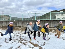 ワクワクしている様子の子ども達。雪遊びにでかけると、