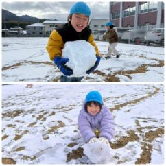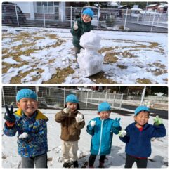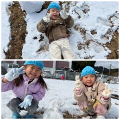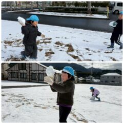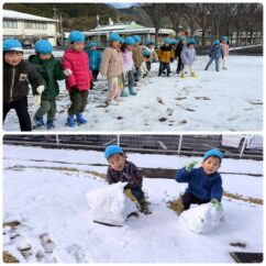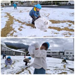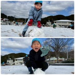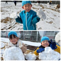 次に、コロコロと転がしていました。大きな雪玉を持ち上げて