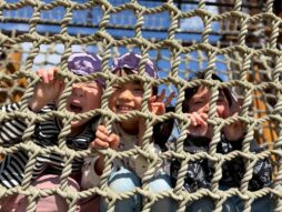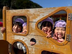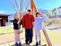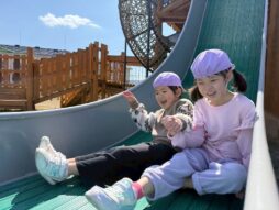 滑り台やターザンロープ、大きな木の遊具に大興奮!