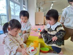 真似て遊ぶことを喜んでいます。絵本の「だるまさんが…」シリーズが大人気。