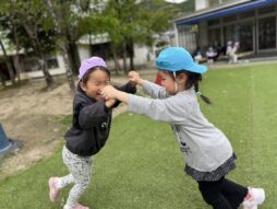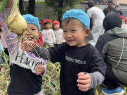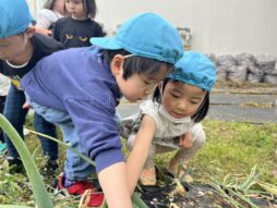 3歳児の時に植えていた玉ねぎが収穫の時期を迎えました♪みんなで力を合わせて、「よいしょ!よいしょ!」と大きな玉ねぎを掘りました!中には、ひっぱてもなかなか抜けない玉ねぎも・・・友達と一緒に協力して引っ張って抜くことができましたね♪戸外では、けんけんぱをしたり、迷路の中を探検したりして楽しんでいました♡