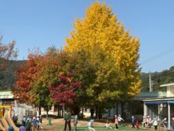 今、園庭には、(イチョウの葉の)