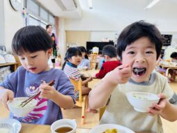 きらきらした笑顔で登園してきた子ども達。~七草~