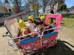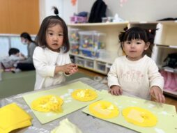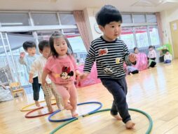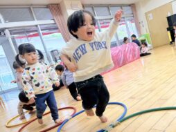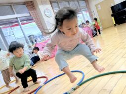 「あっち行った!」と指でなぞっていました。お部屋では、たんぽぽ作りやサーキットを楽しんでいます。笑顔がどんどん増えている2歳児です♡